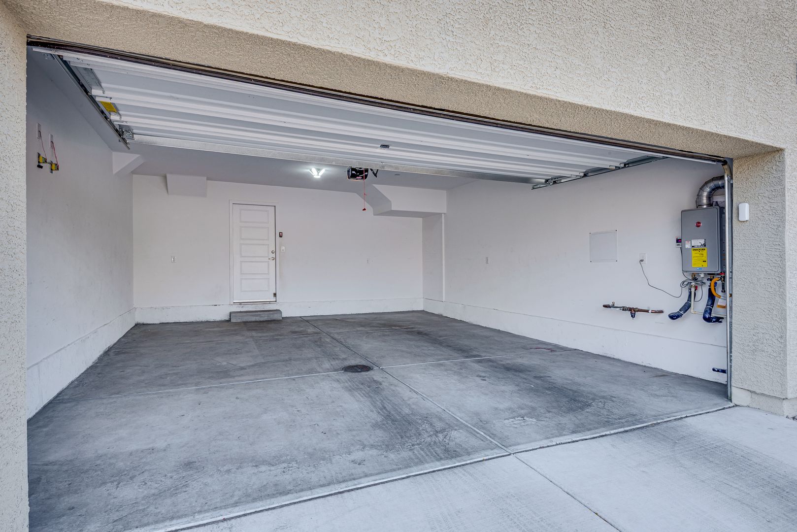 Upstairs, the spacious primary suite includes a dual-sink vanity and walk-in shower. A tankless water heater ensures efficient hot water usage throughout the home. The full-sized garage provides convenient parking and storage, and the covered patio offers a private outdoor space for relaxing.